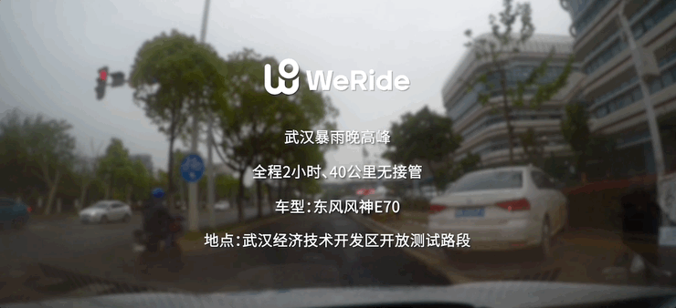 在这样的极端条件下,文远知行的Robotaxi顶着暴雨天气,在晚高峰车流中安全、平稳地行驶40公里长的路段,且2个小时全程无接管。