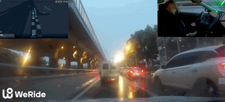 通过多传感器融合定位方案,文远知行RoboTaxi能够实现厘米级精准定位,保障在高架桥、隧道等场景下的安全行驶。