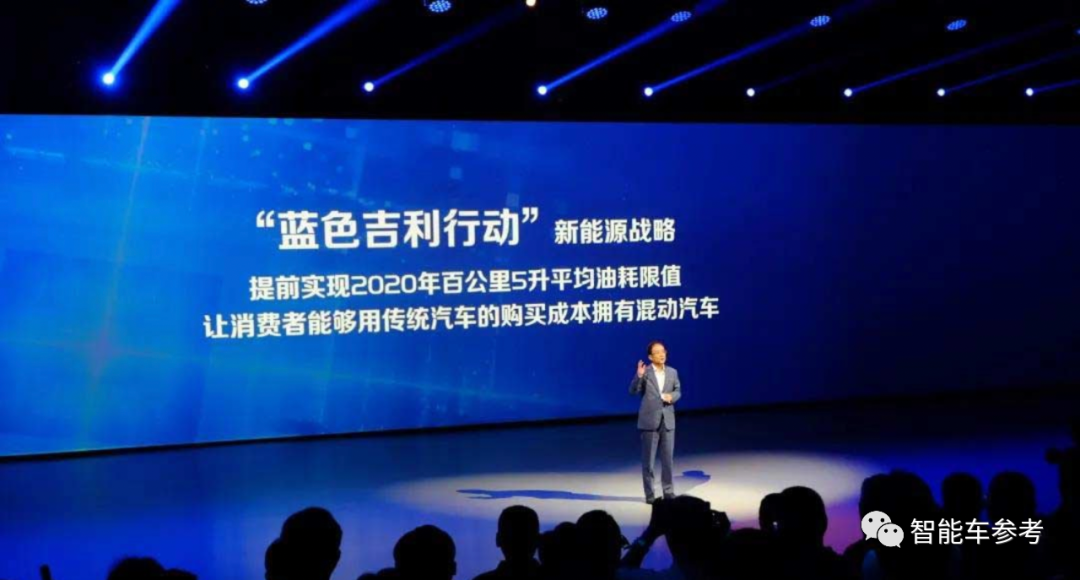 2015年提出蓝色吉利行动,目标是要在2020年实现新能源汽车销量占比达到吉利整体销量的90%。