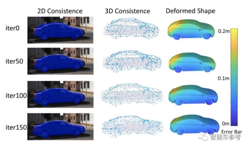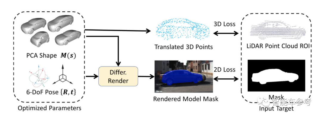 研究人员指出,实际上,3D形状标注的过程可以看作一个优化问题,其目的是计算出最佳参数组合,来适应AI通过“视觉观察”得到的结果(如2D物体掩码、3D边界框、3D点云等)。