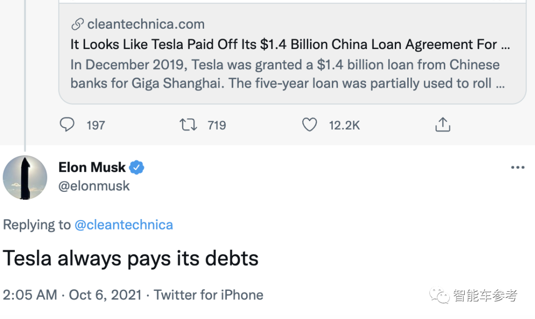 另外,欠中国的90亿,马斯克也刚刚证实提前还清了。