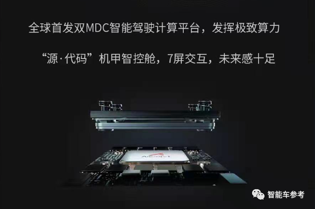 算力芯片,配备华为首发的双MDC智能驾驶计算平台,算力可以达到400TOPS。