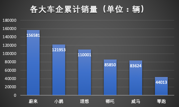 也就是说,第一梯队三家车企,累计交付都已经跨过10万辆级门槛。