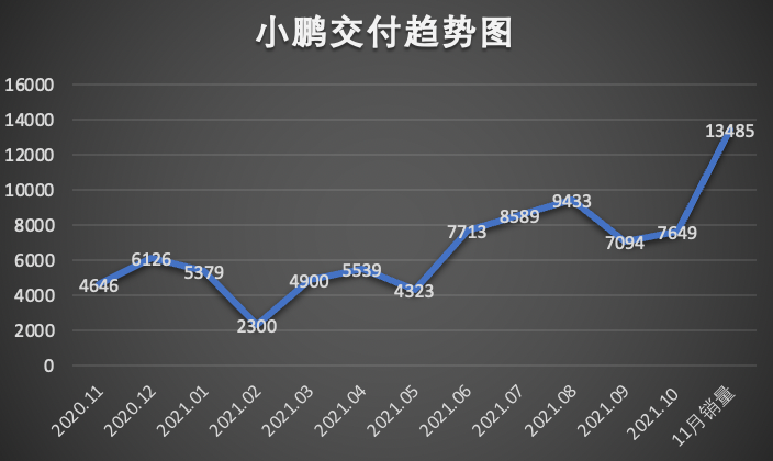 小鹏以11月交付15613辆,排名第1,环比10月份增长54%,较去年同期增长270%。