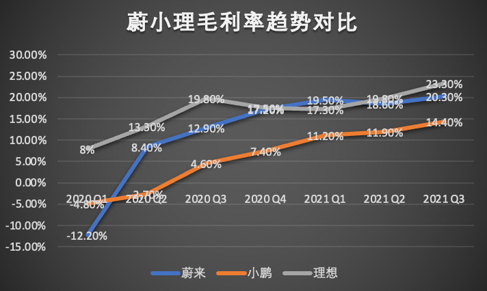 毛利率20.3%,比排名第一的理想低3个百分点,不算差。
