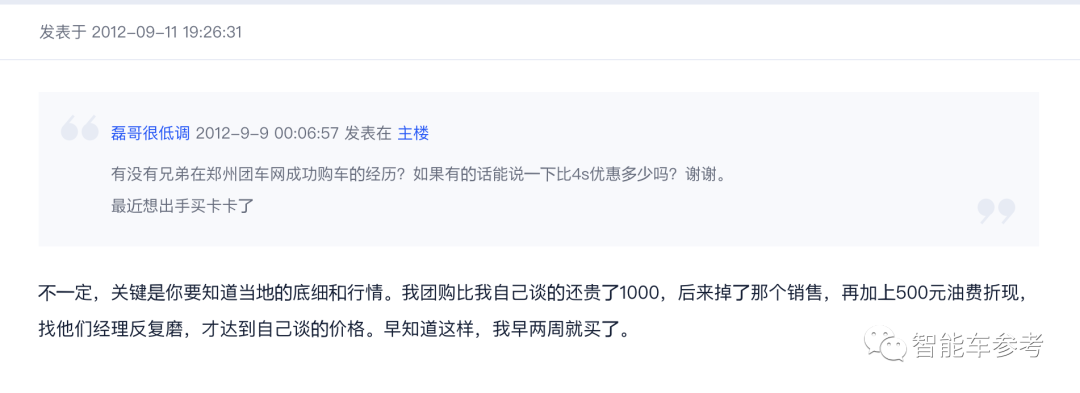 有人说视品牌车型不同能拿到5%-40%优惠,但也有网友反映没啥优惠,甚至还比自己去4S点谈价更高。
