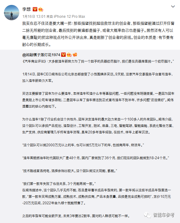 还是你更愿意相信李想这个已经站稳脚跟的造车“过来人”?