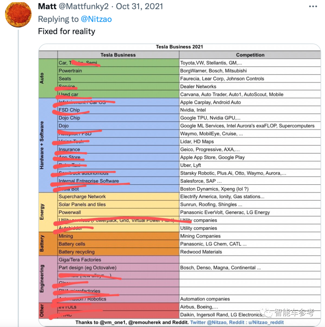 这也正好印证了前文图片中,特斯拉的竞争对手,车企只占一小部分,而大部分的公司与车看起来毫无关系。