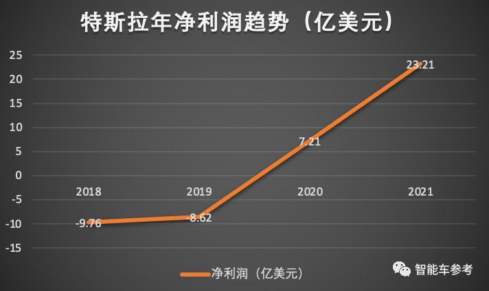 2021年是特斯拉突破性的一年,整体超过90%的增长,营收和净利都创下新高,公司已经开始有稳步盈利能力。