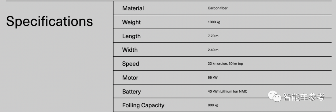 动力方面,C7搭载40 kWh锂离子电池,最大航程50海里(92.6公里),最高时速30海里(55.56公里)/小时。