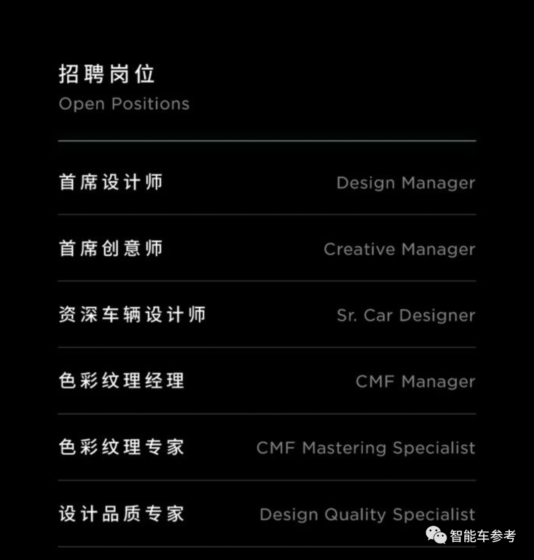 包括首席设计师、创意师、资深车辆设计师、色彩纹理专家和设计品质专家等等。