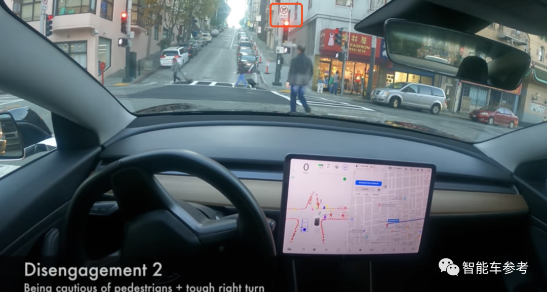 车主测试地点是旧金山的唐人街,道路狭窄,车辆和行人相对于美国的一般路况,更为密集,其行为随意性也更大。