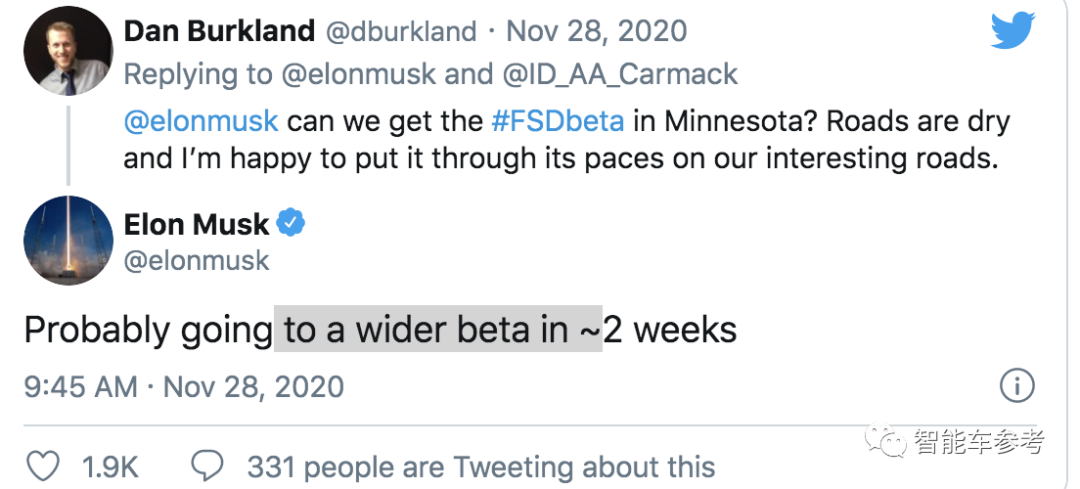 他最近在推特表态,更新更全面的FSD Beta,12月份上线,并且要扩大测试规模。