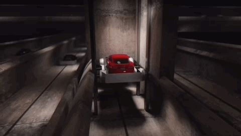 车辆只需要在平台上停好,之后平台会下降到隧道地面,载着车辆高速运行。