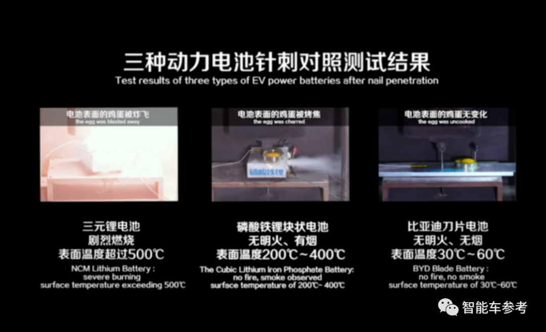 为此,一向低调的比亚迪,在刀片电池的发布会上,还用烤鸡蛋、大卡车碾压的方式,现场展示刀片电池的安全性。