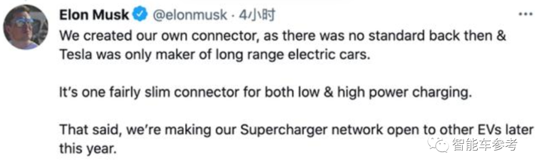 去年年中马斯克在推特上宣布了要给所有品牌电动车开放自家的超充桩: