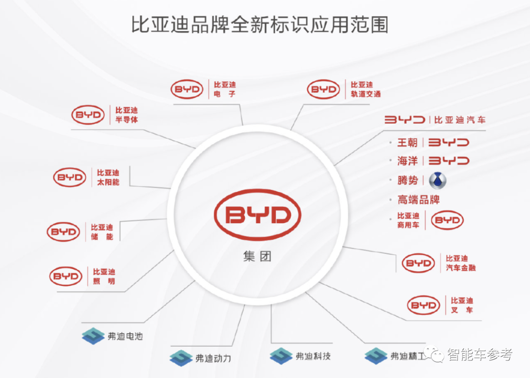 这张图中可以一览比亚迪集团全貌,大部分子公司都采用了新logo。