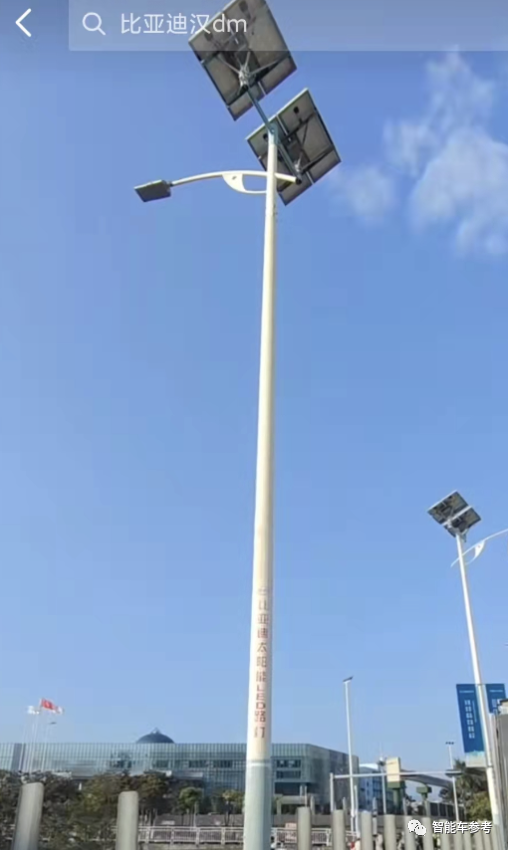这是网友在深圳街头拍的照片,可以看出一杆比亚迪路灯上,集成了灯具、太阳能电池板、以及储能系统。