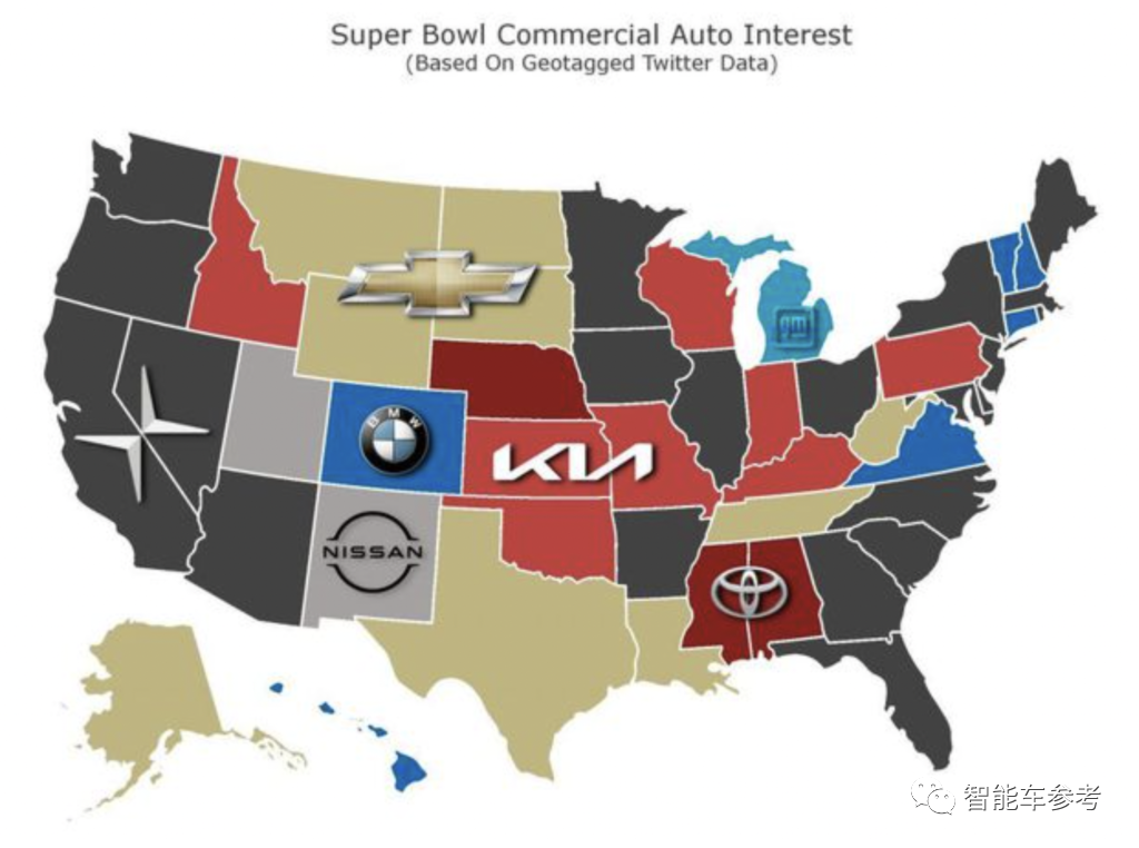 社交平台Twitter搜索数据也显示,极星的广告在超级碗汽车广告中最受关注。根据追踪的超过190,000条推文,极星的广告关注度在美21个州位列第一名。
