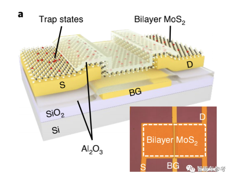 所谓高感光范围的“人造视网膜”,核心是利用电荷陷阱态对电子的捉放效应以及二硫化钼本身的“时间——抑制激励”作用,从而达到人为控制感光半导体电导率的目的。