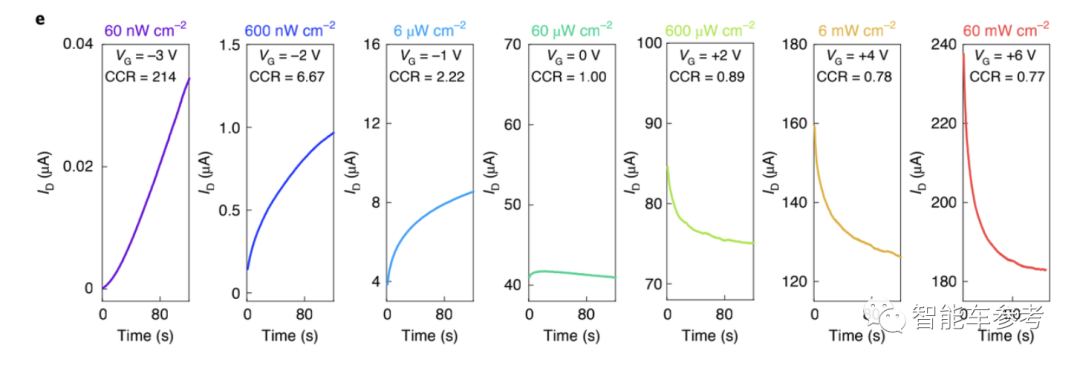 在不同的栅极电压下,通道的电子可以被捕获或释放,这就可以定量地动态调节器件的电导率。