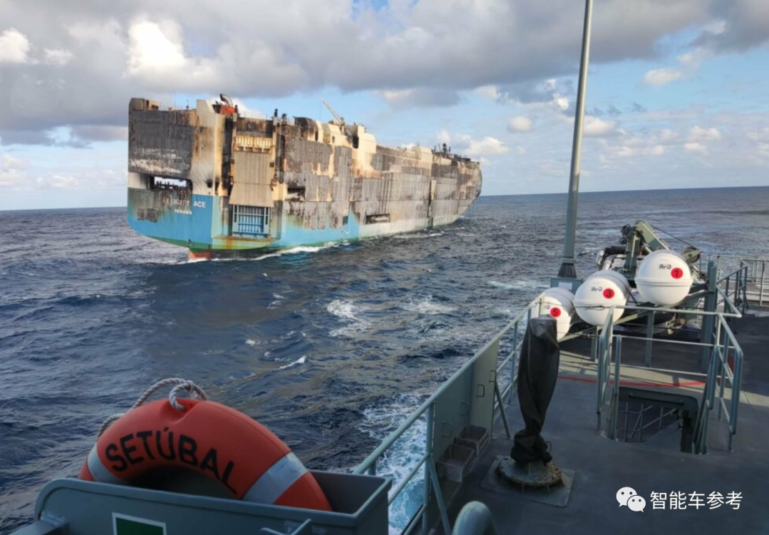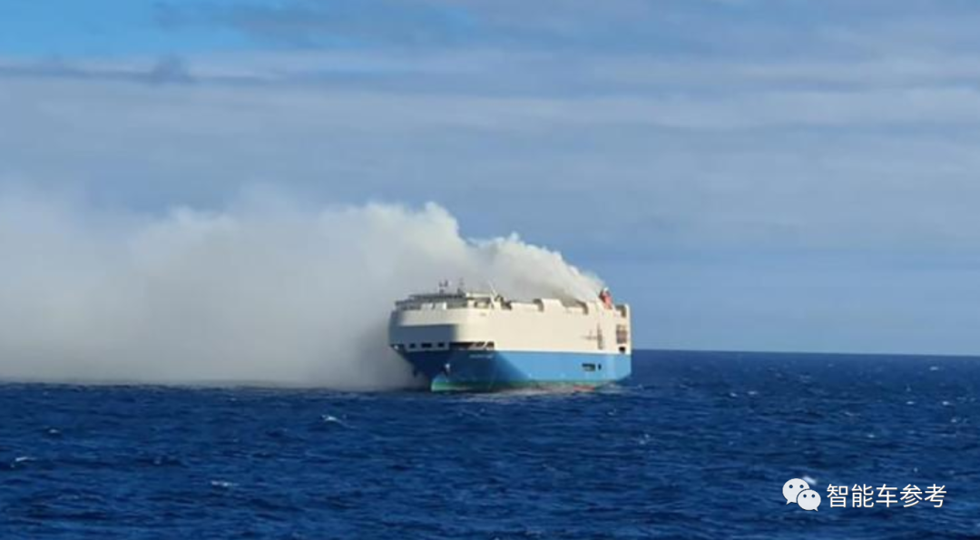 这艘为大众集团运车的货船,2月16号在葡萄牙亚速尔群岛附近海域,意外起火。