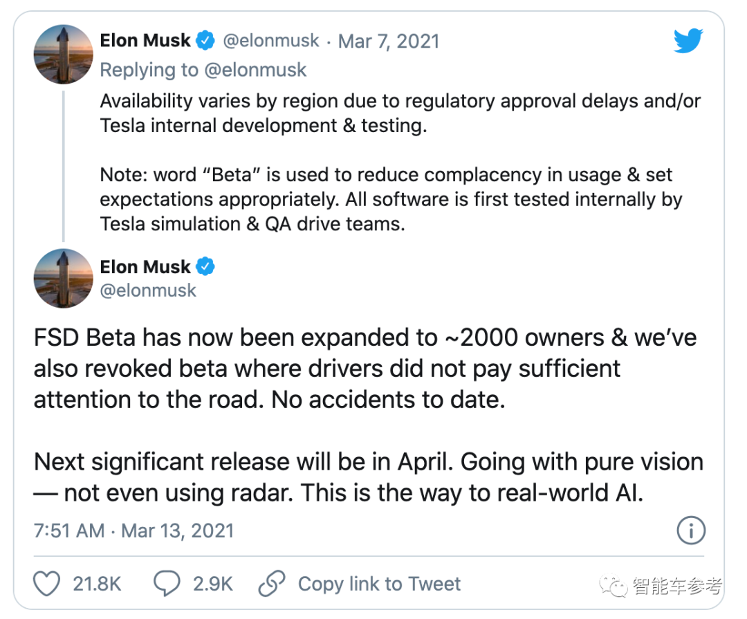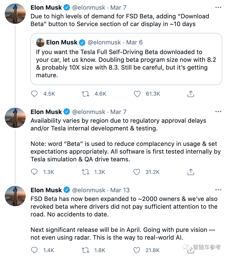马斯克说,之所以是beta版本,就意味着还处在测试阶段,虽然至今没有发生任何事故,但不能完全不管不顾。