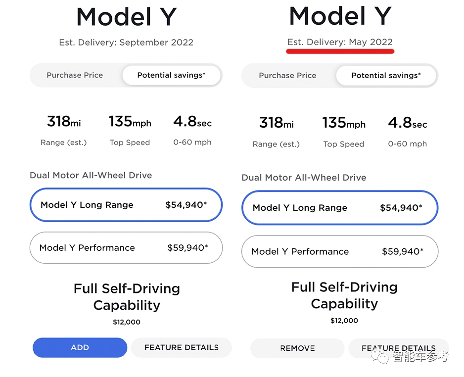 在此之前,Model 3的交付周期是两个月,选配FSD之后,交付周期将缩短至一个月。而Model Y交付周期更长,长达6个月,在选配FSD之后,交付周期缩短到两个月。