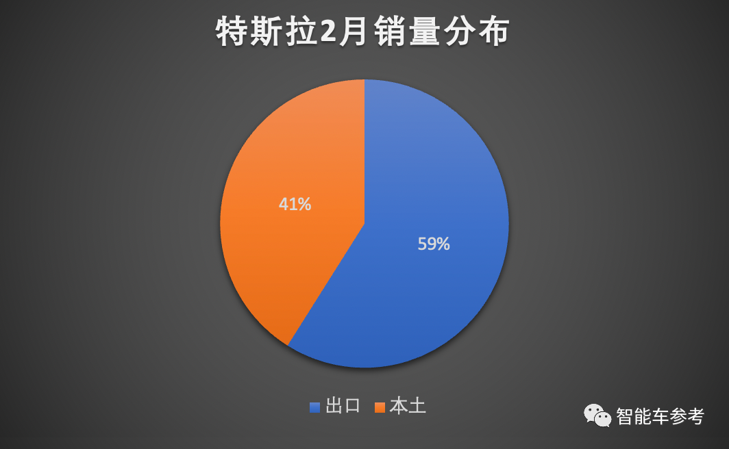 与比亚迪不同的是,另一个恒强玩家特斯拉,2月份则主要依靠出口支撑。数据显示,2月份特斯拉中国销量为56515辆,较去年同期大增208.5%,环比1月份略降5.6%。其中,2月份中国生产的特斯拉,有33315辆出口国外,23200辆在国内销售。也就是说,2月里特斯拉中国的销售主力,是海外市场。