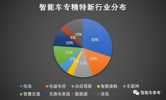 根据统计,在入选专精特新的智能车相关企业中,涉及动力电池的企业最多,企业数量达到39家,占到入选总数的30%。