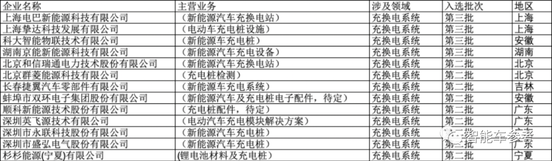 排在第2位的是电驱电控系统,有19家企业入选,另外还有13家企业涉及电动车充换电系统。