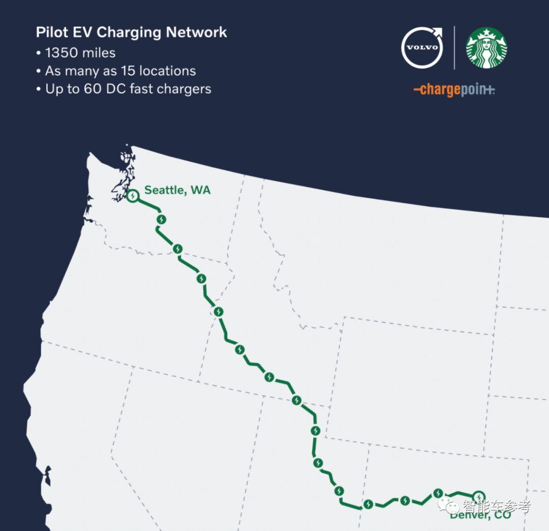 根据计划,星巴克与沃尔沃的充电网络,将以星巴克在西雅图到丹佛之间的15家公路门店为基点,铺设15个充电站,共60个充电桩。
