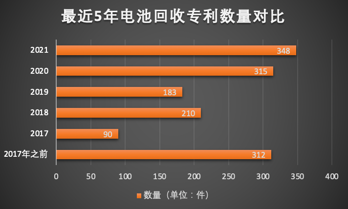 国家知识产权局数据显示,最近20年,我国与电池回收相关专利共有1458件,其中2017年以来申请的相关专利有1146件,占比近8成。