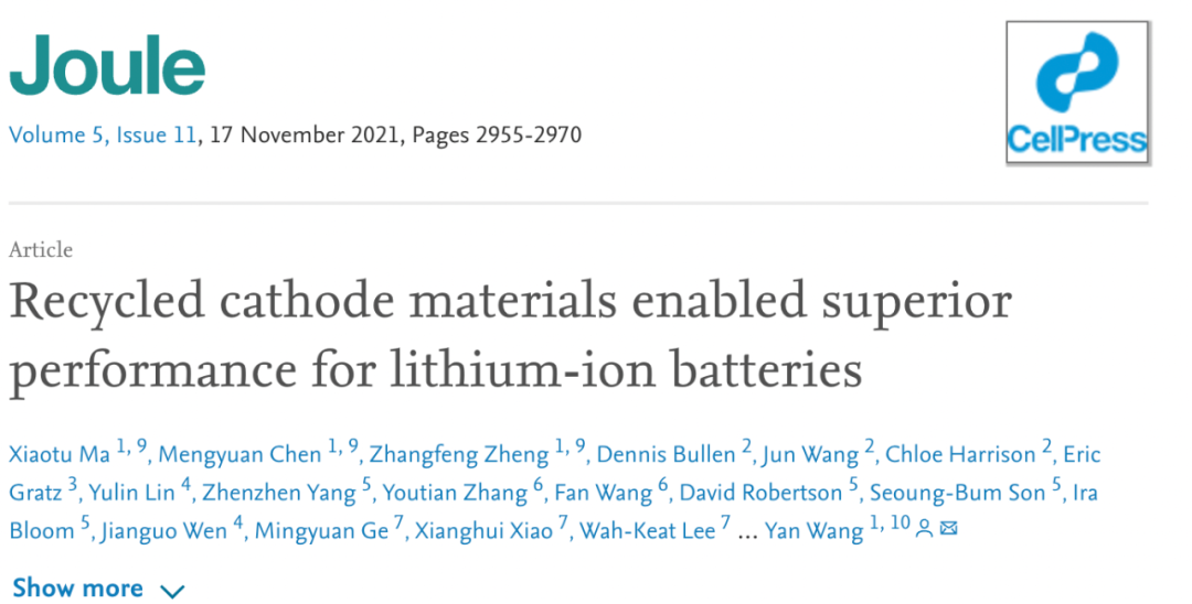 研究成果,出自伍斯特理工学院材料科学教授王岩和美国先进电池联盟(USABC)学术团队,发表在著名学术期刊《焦耳杂志》上。