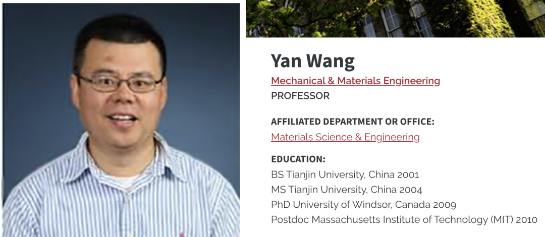 通讯作者王岩,伍斯特理工学院机械与材料工程教授,同时也是学术团队负责人,Ascend Elements公司联合创始人。