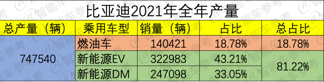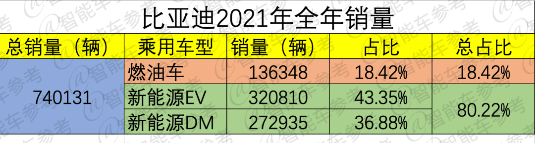 比亚迪燃油车全年售出超过13万辆,占比18.42%,同样超过1/5。