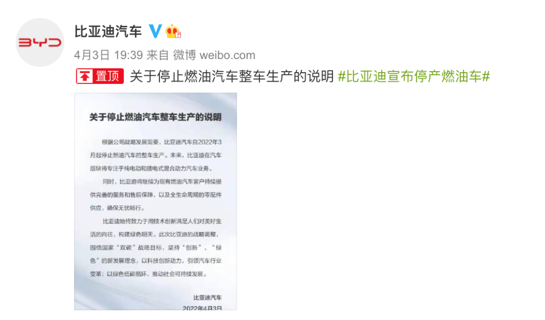 停产燃油车,全面、全速转型新能源,对于比亚迪是时候了。
