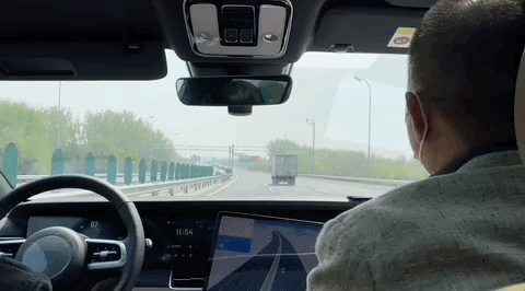 先来点基础的,车道保持,略微有点晃(可能跟小编坐在后排有关系):
