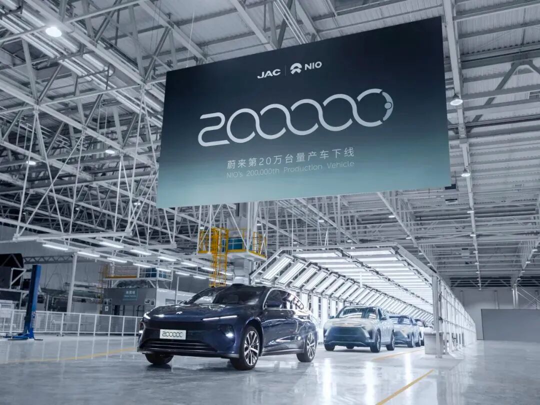 4月26日,蔚来第20万台量产车在江淮蔚来合肥先进制造基地下线。