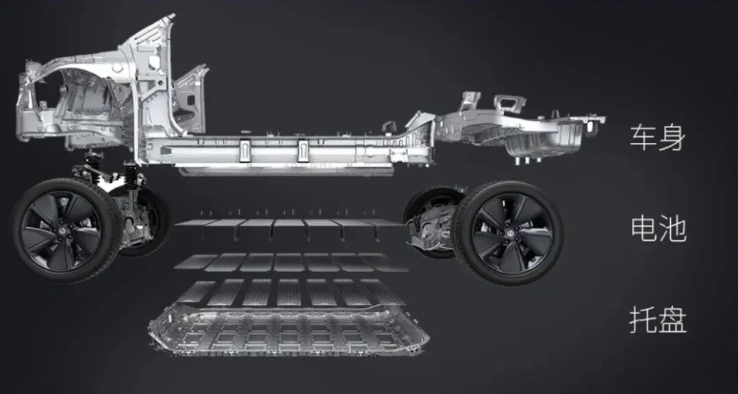 该技术的好处在于,通过减少冗余的结构设计,能有效减少零部件数量,在提升空间利用率和系统比能的同时,让车身与电池结构互补,使电池抗冲击能力及车身扭转刚度得到大幅度提升。