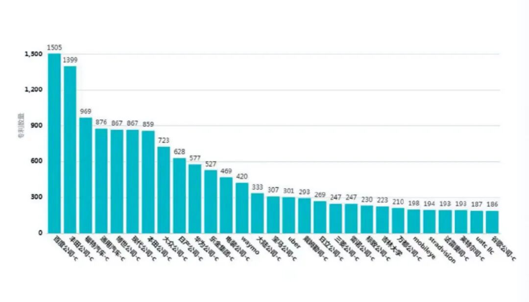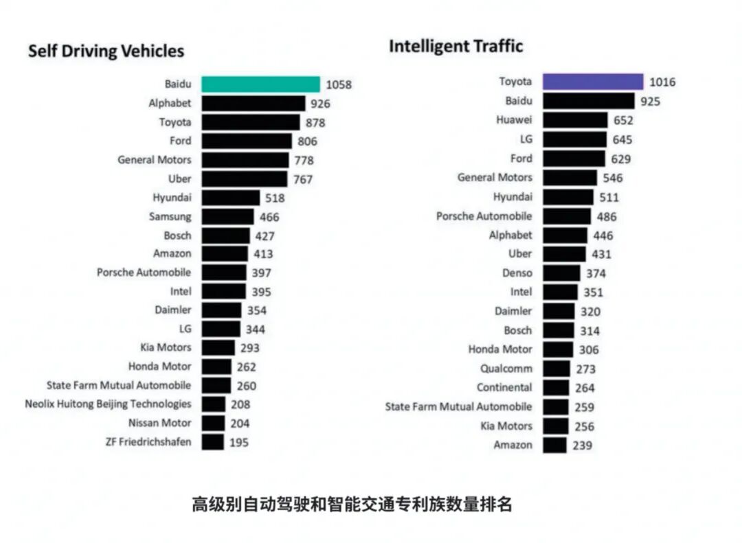 2021年百度自动驾驶专利族数量排名全球第一,超过了丰田