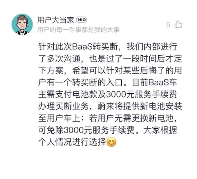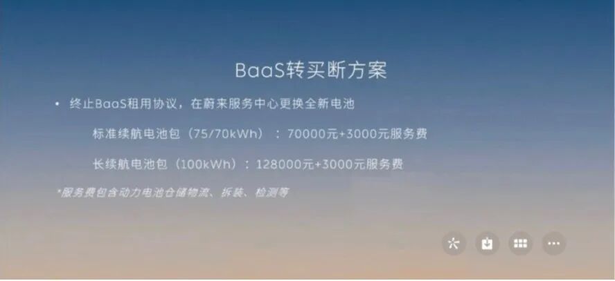近日,蔚来推出了电池租赁(BaaS)转买断方案。