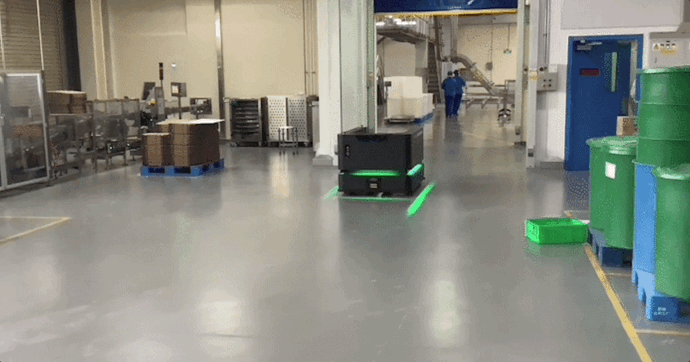 比如下面这个制药厂场景中,叉车AMR完成了一整套识别货物、叉取货物、搬运货物、进出电梯,实现跨楼层转运的全流程。