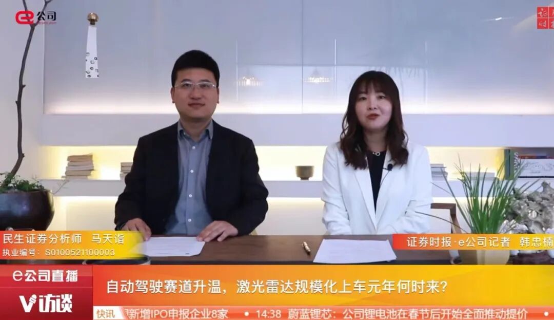 5月5日,民生证券研究院通信首席分析师——马天诣访谈时表示,把2022年视作激光雷达规模上车元年为时尚早。
