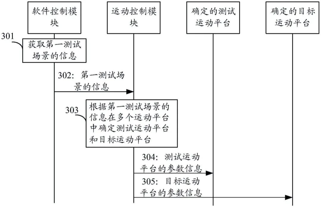 然后,运动控制模块接收到第一测试场景的信息,可以根据第一测试场景的信息在多个运动平台中确定测试运动平台和目标运动平台。