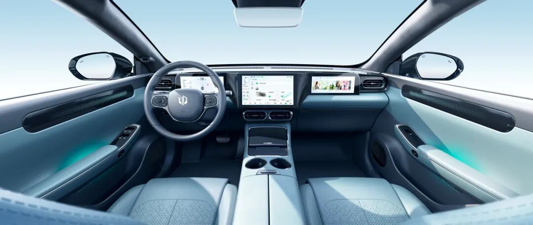 内饰则使用了零跑C11同款的T台型三联屏的设计。