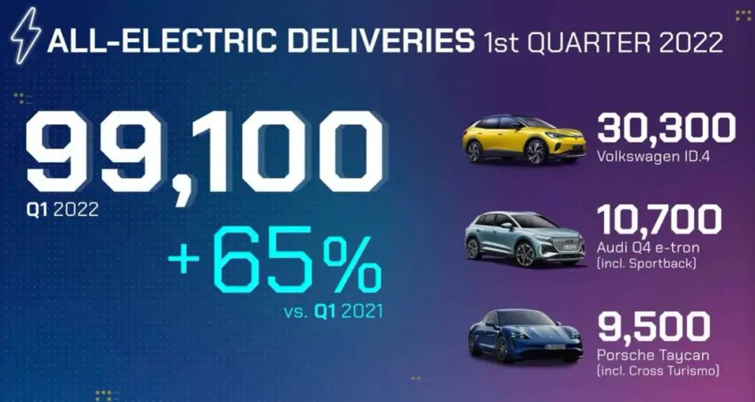 其中,第一季度奥迪卖了24,236辆纯电车,同比增长了66.2%,占大众集团一季度纯电车总销量9.91万辆的6.3%。