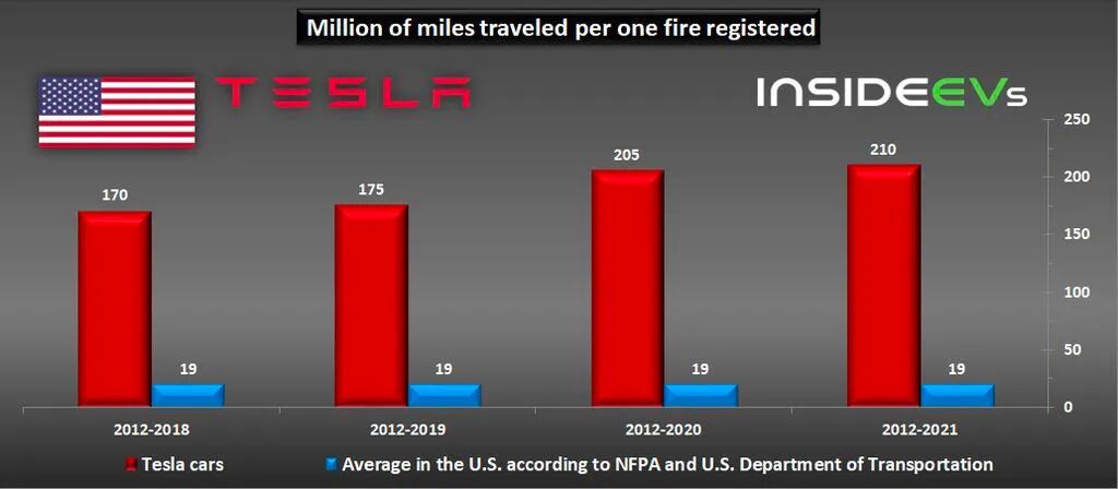 总的来说,2012-2021年,特斯拉起火概率约为美国平均水平的1/11。
