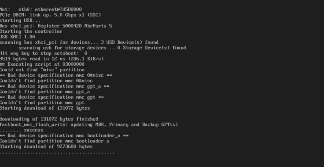 fastboot flash gpt deploy-gpt.img fastboot flash bootloader bootloader-sd.img fastboot flash uboot-env env.img fastboot reboot # Wait for board to power up in bootloader fastboot oem format fastboot flash bootloader bootloader-sd.img fastboot flash uboot-env env.img fastboot flash recovery_boot boot.img fastboot flash dtbo_a boot_dtbo.img fastboot erase misc fastboot reboot-fastboot # Wait for board to power up in fastboot fastboot flash boot boot.img fastboot flash super super.img fastboot format:ext4 userdata fastboot format:ext4 metadata fastboot reboot