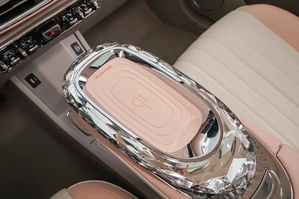 中控台支持手机无线充电,环绕处装了一圈氛围灯,官方称可以调节改善人的心情,下方储物箱设有专门放置口红、粉底、睫毛膏的卡槽,可以防止开车时滑落。